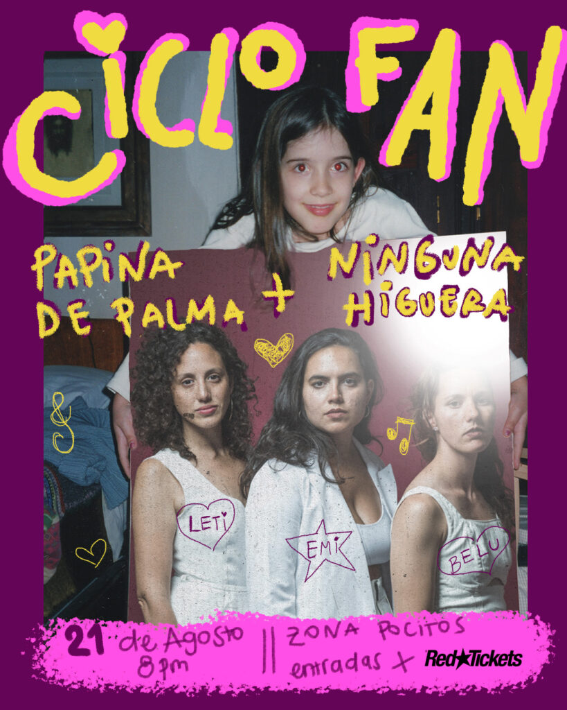Decidí invitar a algunxs de mis ídolxs a compartir fecha. Le puse ciclo fan porque eso es exactamente lo que soy, una señora muy fanatizada con sus amigxs. Me gusta mucho crecer/envejecer cerca suyo y manijearme con sus canciones nuevas e inspirarme con sus shows, sus preguntas, sus triunfos y aprender también de cuando las cosas no nos salen bien. La música es muy generosa conmigo. Yo le doy y le doy y es como sembrar un campo enorme que después se llena de flores y de frutas, jugosas como una canción inspiradora o un encuentro alentador. Me gusta escuchar a estas personas porque sus músicas me recuerdan que no estoy sola en este camino deforme, incierto y hermoso de crear.